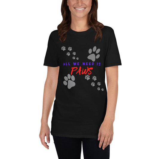 All We Need Is Paws T-Shirts Cute Dog Lover with Paw Marks Unisex Apparel Tee Gift for Friend Family Dog Moms or Dads Dog Grandma or Grandpa
