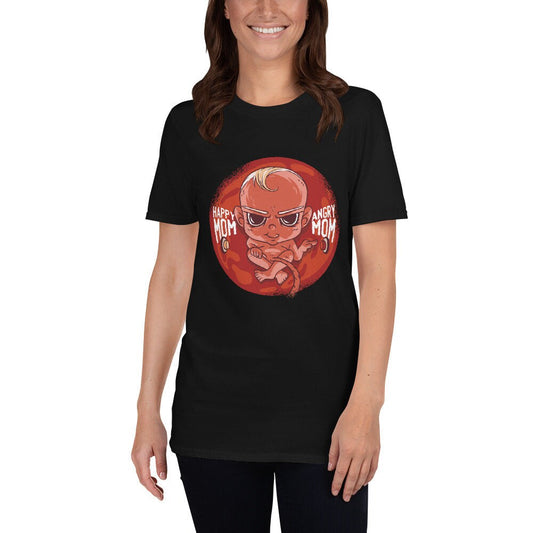 Baby Mom Pregnant Silly Funny Evil or Good Button T-Shirt Great Gag Gift Idea for a Pregnant Family Member or Friend Baby Shower Gift Tee