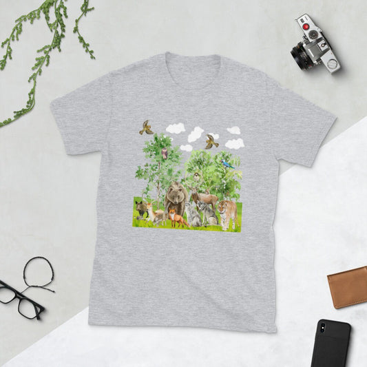 Animals in the Forest Family T-Shirt Great Gift Idea for Men and Women that Love Animals. Bear Tiger Fox Birds All Kinds of Forest Animals