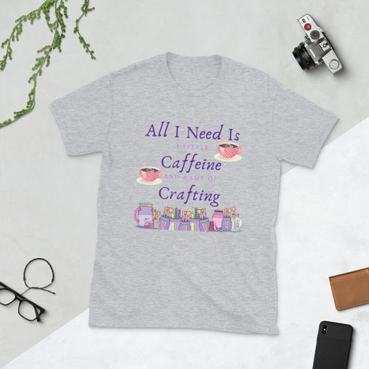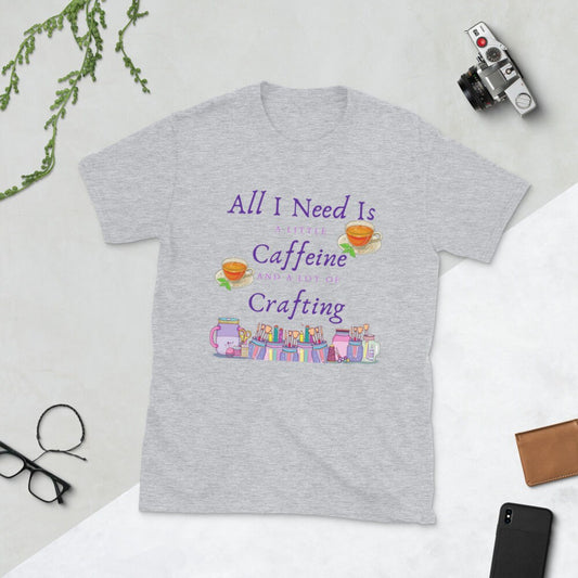 All I Need Is A Little Caffeine And A Lot Of Crafting Gift Idea for Anyone That Loves Coffee and Tea and Crafting T-Shirt For Women or Men